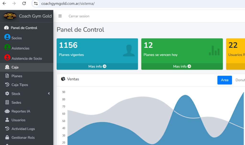 Sitio web oficial del gimnasio Coachgym Gold , Aplicacion Web de Gestión de Gimnasios en 4 sedes de Salta Capital, integracion con IA